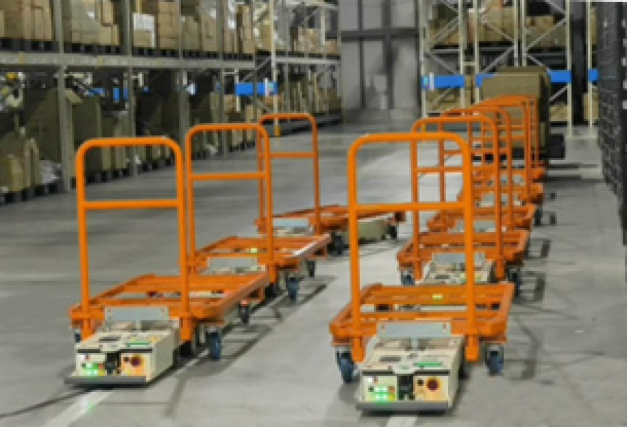 自動車関連をはじめ多くの生産工場で幅広い用途でAGVは使われています。工程間の搬送や製造ラインへの部品の供給、トラックヤードから保管エリアの搬送、またはセル生産で工程を順次巡回するなど、生産効率の向上にはかかせないものとなっています。